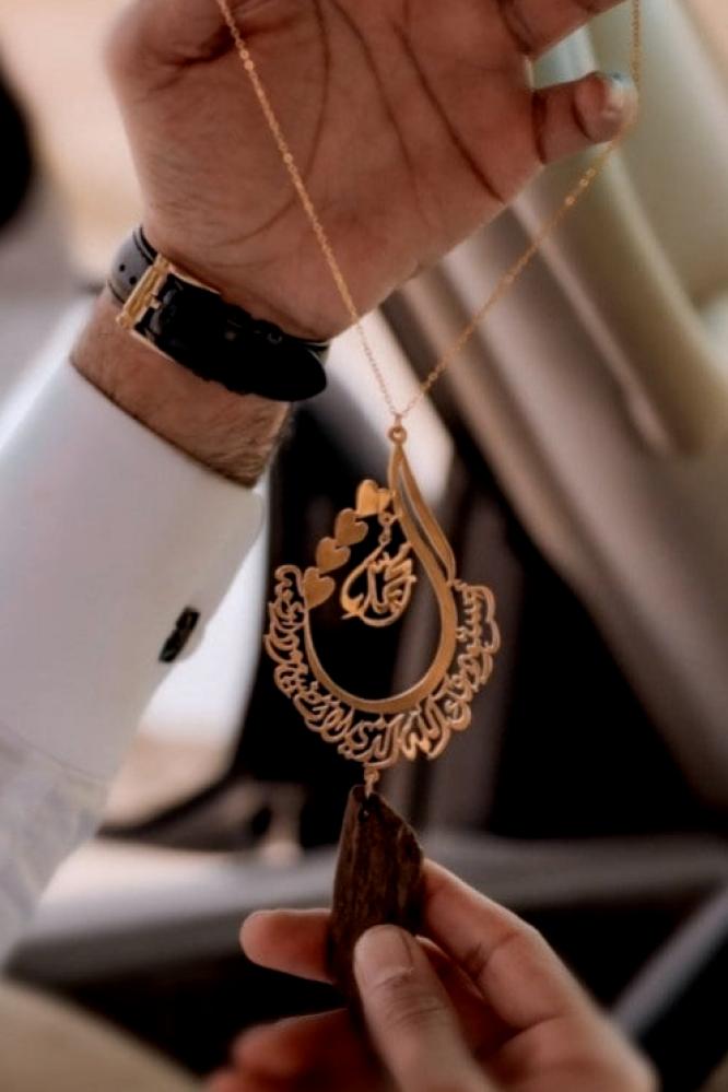 تعليقه سياره كسره عود بالاسم مع رئحة العود الفاخره عطر سيارتك بتعليقة دائمه نوفرها بالون فضي او ذهبي